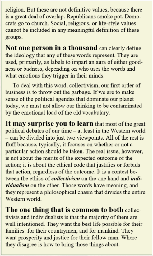 ideology of individualism, and individualism is the indispensable