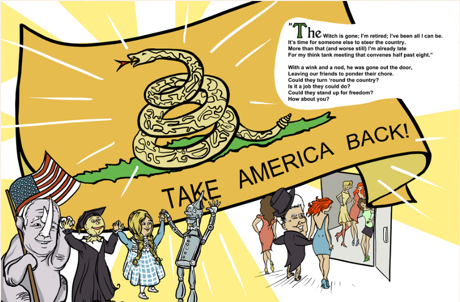(her house lands on Obama.) she must rescue the "Free-Lunchkins"