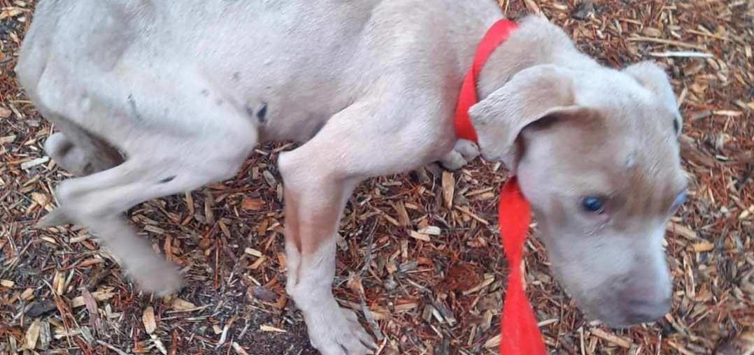 defenseless dog is left to die in misery with its mouth wired shut.